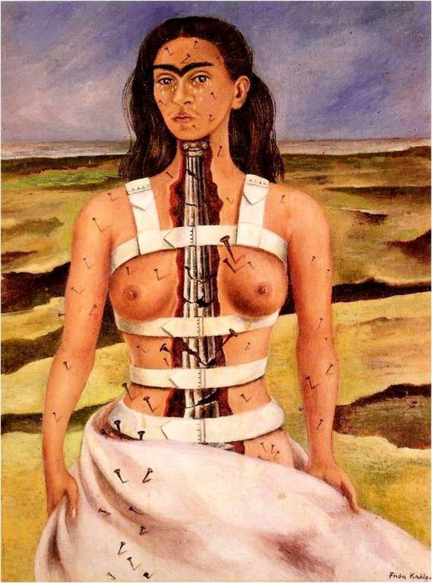 Magdalena Carmen Frida Kahlo Calderón (Coyoacán, 6 de julio de 1907-ibídem, 13 de julio de 1954) fue una pintora mexicana. Su vida estuvo marcada por el infortunio de contraer poliomielitis y después por un grave accidente en su juventud que la mantuvo postrada en cama durante largos periodos, llegando a someterse hasta a 32 operaciones quirúrgicas. Llevó una vida poco convencional. Su obra pictórica gira temáticamente en torno a su biografía y a su propio sufrimiento. Fue autora de unas 200 obras, principalmente autorretratos, en los que proyectó sus dificultades por sobrevivir. La obra de Kahlo está influenciada por su marido, el reconocido pintor Diego Rivera, con el que compartió su gusto por el arte popular mexicano de raíces indígenas, inspirando a otros pintores y pintoras mexicanos del periodo posrevolucionario.